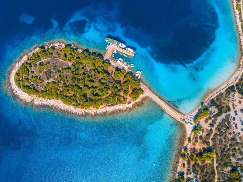 - En chemin, accostez dans la baie de Krknjaši, dont les couleurs évoquent un lagon tropical, et qui est protégée par les îlots qui l'entourent.